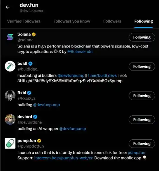 buildDAO 是 dev.fun 官推**的 5 个关注之一