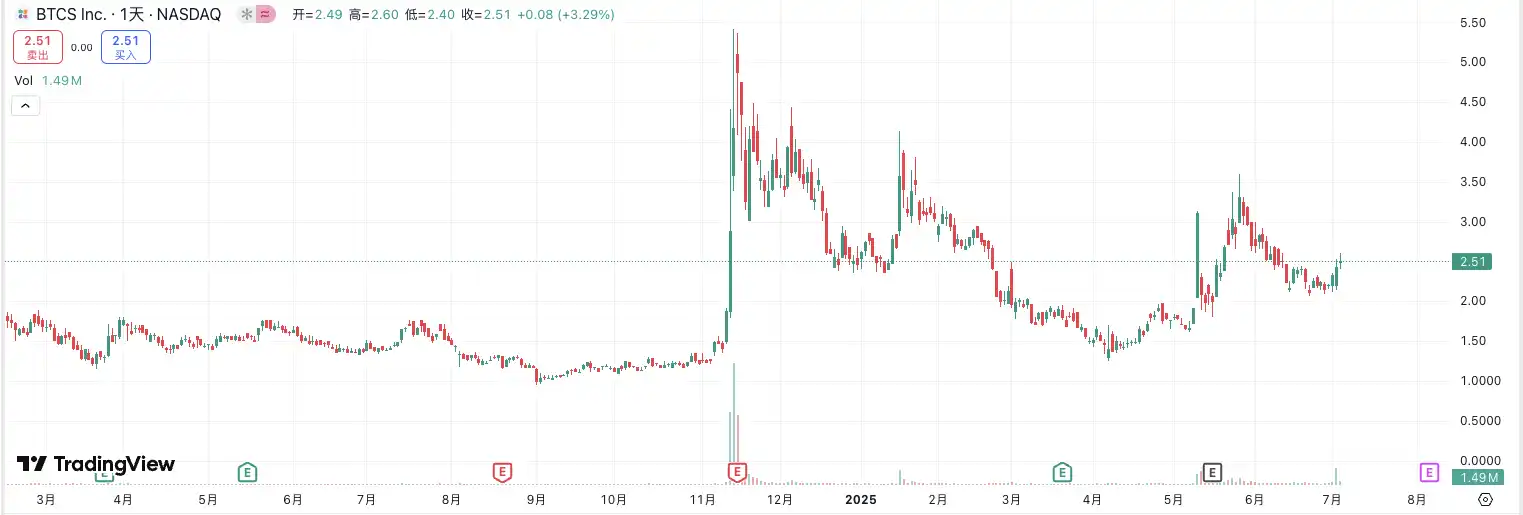 上市时间:2021 年 9 月 | 交易所:NASDAQ | 股票代码:BTCS | 市值:约 5300 万美元