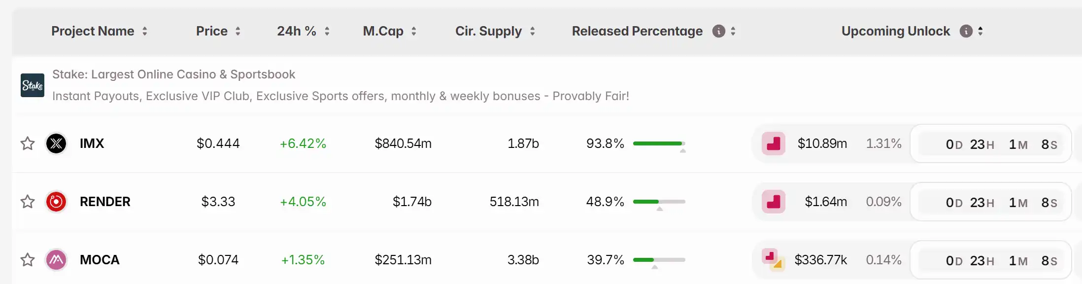 每日市场整体资金热度(根据资金费率反映)与**解锁