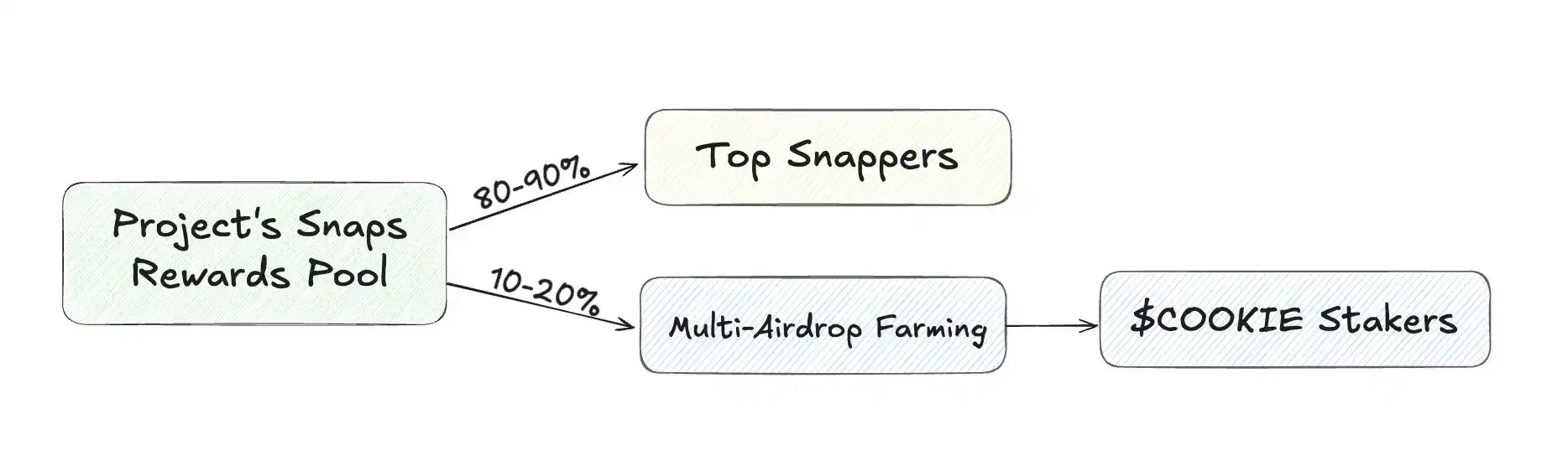接下来每一个 Cookie Snaps 合作项目中总奖励的 10% 至 20% 分配给 COOKIE **质押者;