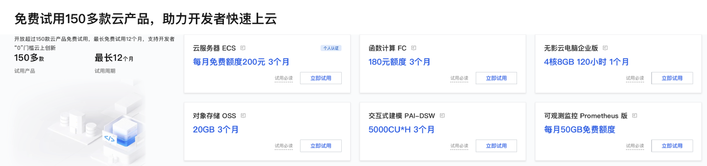 此外,本次活动还有免费试用 150 多款云产品等,包括: