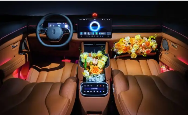 据了解,问界M7焕新版的内饰细节也已提前曝光,其中赤茶橘色调的内饰吸引了大量关注。新车中控台上装配了与高端车型问界M9同款的星环散射体——施罗德散射高音单元,这一设计不仅提升了车内的音响效果,还能配合音乐旋律进行主题灯光律动,营造出极为动感的车内氛围。