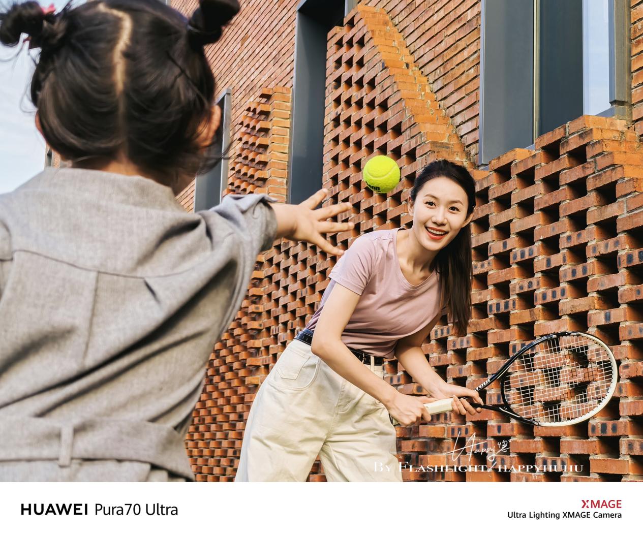 华为 Pura 70 系列的风驰闪拍功能不仅在日常场景中表现出色,尤其在人像拍摄方面更是独树一帜。得益于这种极速抓拍能力,妈妈和孩子无需刻意摆拍,就能轻松捕捉到每一个生动的瞬间。比如这组妈妈孩子打网球的作品中,妈妈的表情充满了兴奋和顽皮,人像虚化层次分明,发丝轮廓和面部细节精准捕捉并真实呈现,为用户带来真实光影下的艺术感。