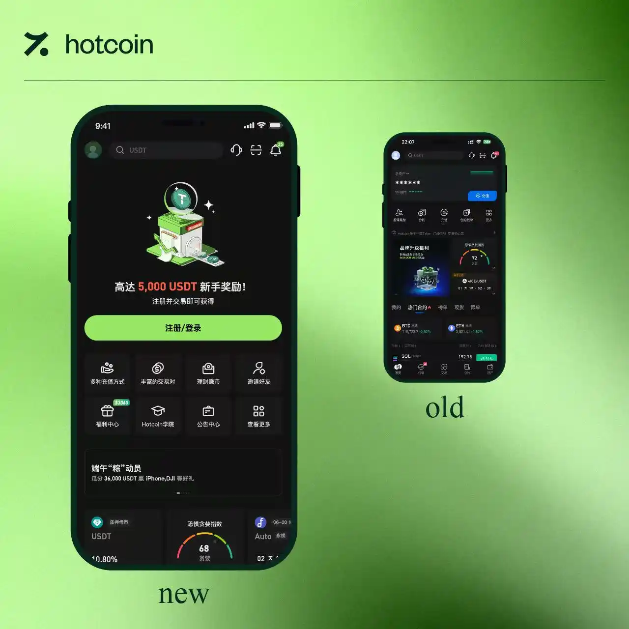 品牌的进化,往往始于一次视觉语言的革新。过去几年,Hotcoin 以经典的蓝白色 Logo 为品牌标识,采用更具活力感与强调收益预期的品牌调性,构建了一个活跃、年轻、富有爆发力的交易平台形象。