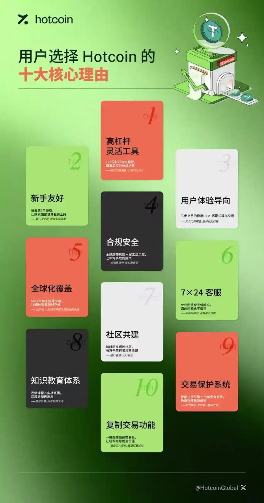 但更重要的是,Hotcoin 正在将这些「功能优势」升级为「品牌价值」——让「专业、安全、透明、支持性」成为用户对 Hotcoin 的**印象。