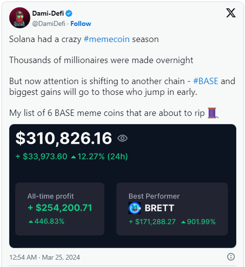 然而,Dencun在这方面可能成为一个游戏规则改变者,有可能将Base定位为下一波模因币热潮的**。