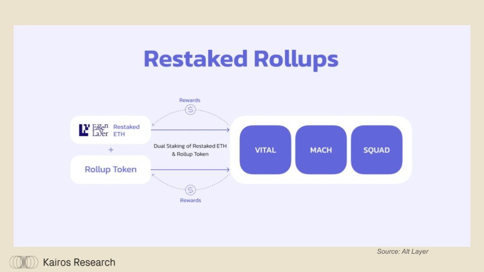 简单来说,再质押Rollup是一种利用Alt Layer的三部分垂直整合的AVS堆栈Rollup,其中包括: