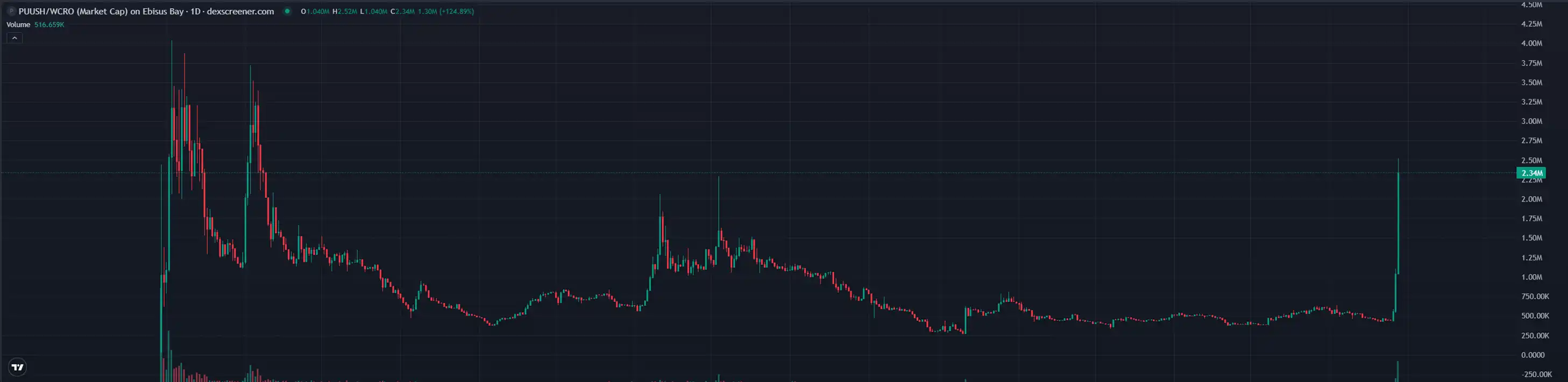 这个台子也是有** $PUUSH 的,已经发了 1 年多了,**峰的市值也不到 500 万美元。在 $CRO 大涨前,$PUUSH 的市值只有 40 多万美元,而目前,市值已经有约 230 万美元。