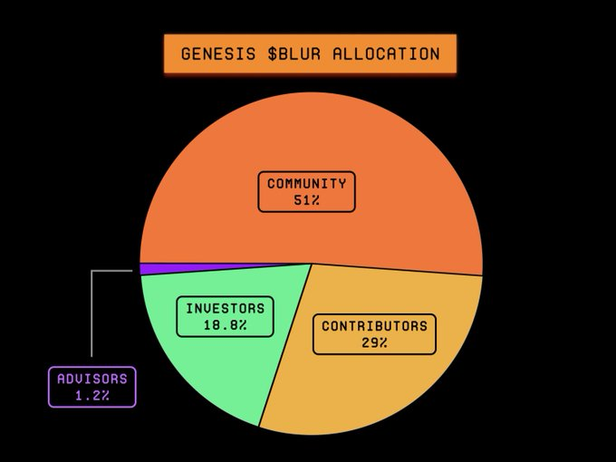 03、**分配随着 $Blur **的发行,我认为该项目是将协议价值分配的权力转移到社区的最成功的项目之一。$Blur 最初流通供应的 3.6 亿** (供应量的 12%) 被分配给了社区,那么其余的呢?
