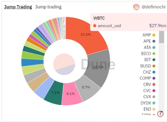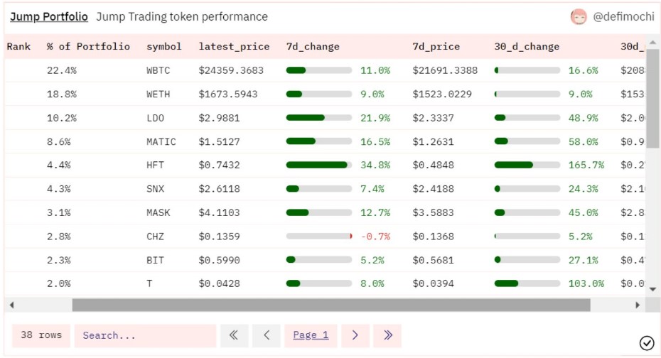 当前Jump Crypto旗下加密投资组合总规模达到148,928,823美元,而且他们的选择也非常好,过去一个月该机构的加密投资价值增长了24%,目前持有量最多的**分别是WBTC、WETH、LDO和MATIC。
