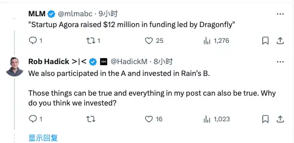 而 Moonpay 的总裁也在几个小时前宣布加**盟,也许是为了回应社区**mlm在 Dragonfly 合伙人 Rob 为 Agora 发布的偏「FOMO」的言论推文,还特别宣布将要求 Paradigm 联创 Matt Huang 回避这次投票(Paradigm 同时是 Stripe、Tempo、MoonPay 和 Agora Finance 的投资者)。