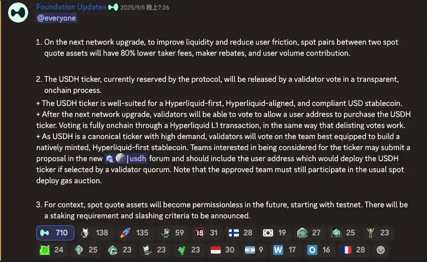 Hyperliquid 独有的 Ticker 拍卖系统允许**人竞拍注册新资产符号,但 USDH 作为潜在平台专属稳定币最初被官方保留未开放,社区一度以为官方将直接推出 USDH 稳定币。