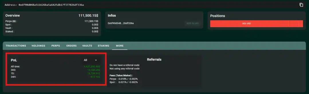 在 Hyperliquid 平台,每笔交易的返利比例约为 0.0030%——也就是说,每交易 1000 美元,就能获得 0.03 美元的返利。
