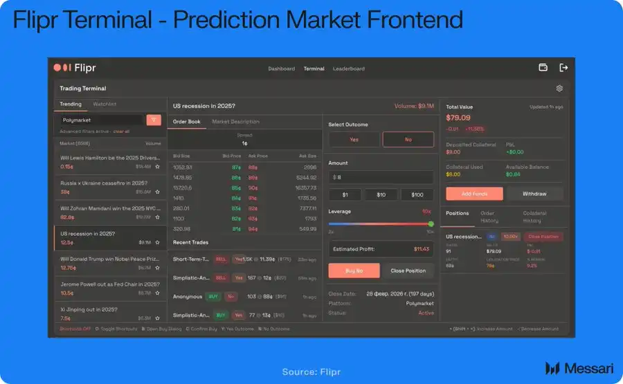 例如,Flipr 提供一个交易终端、X 平台上的交易机器人,以及利用现有流动性实现高达 10 倍杠杆。