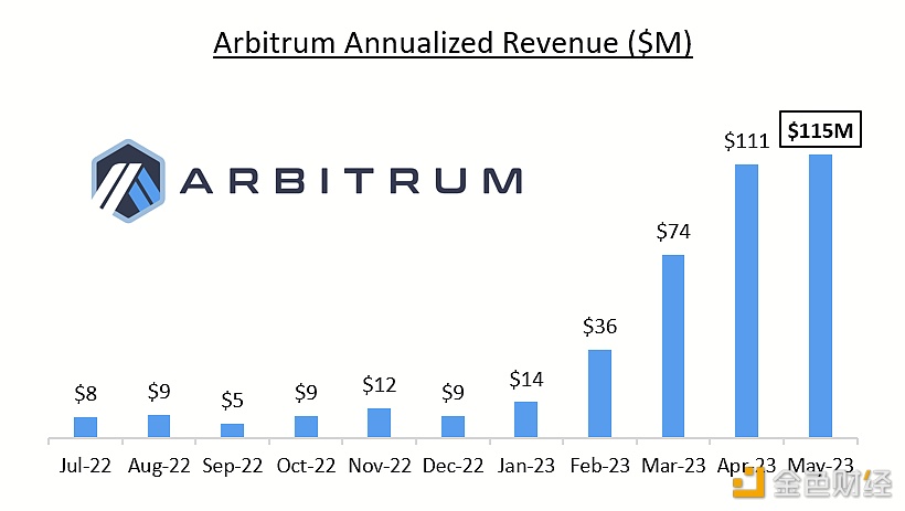 Modular Capital合伙人James Ho在社交媒体上称,Arbitrum的年收入在1亿美元以上,目前的净利润率为30-40%,在eip-4844/proto-danksharding之后,利润率将扩大到90-95%。从这个角度看,ETH的年化费用是30-50亿美元,Layer 2市场正朝着令人难以置信的盈利方向发展。Optimi**也类似,年化费用约为 6000 万美元(大约是ARB运行率的一半)但目前的两条链都是单序列器,既没有 OP/ARB **用于支付 gas,也没有明确的效用。 Arbitrum已经做到了ETH主网现货dex量的一半(160亿美元/月对320亿美元)。每天的txns/活跃钱包都是一样的,在经济活动中,L2**超过ETH只是时间问题,单个L2的费用超过10亿美元,比许多人想象的要快。