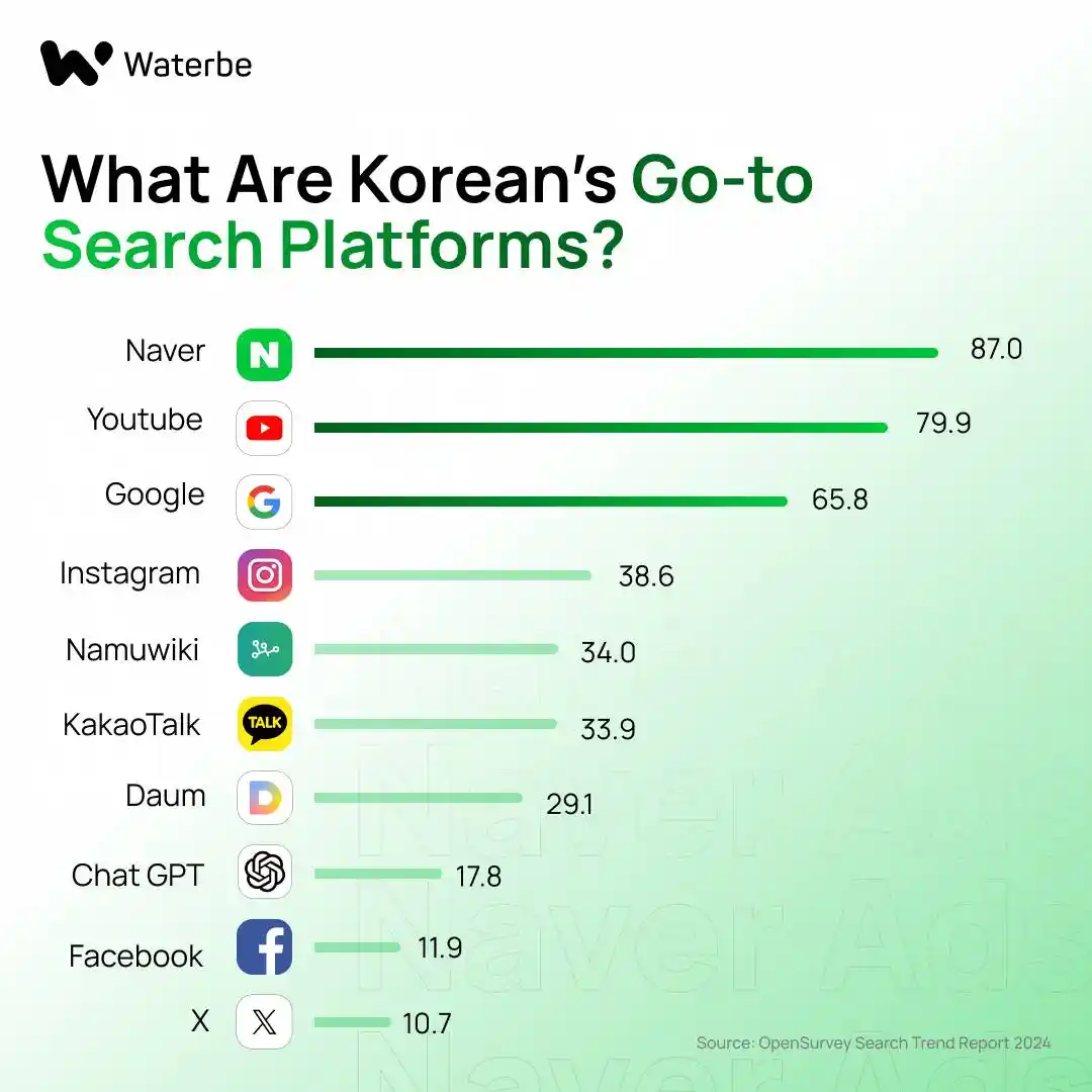 在韩国,Naver 的地位相当于谷歌加腾讯。它既垄断了 70% 的搜索引擎市场,又通过旗下产品构建了一个庞大的互联网生态系统。