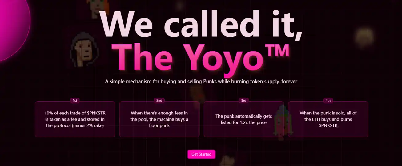 $PNKSTR 的全称是「PunkStrategy」,通过交易 CryptoPunks NFT 来完成 NFT 和**的循环飞轮。每笔 $PNKSTR 交易都会收取 10% 的费用,并且有 8% 存入协议中。一旦协议资金池中积累到可以用于购买 CryptoPunks 的费用,合约就会自动购买一个地板价的 CryptoPunks,并且自动以买入价格的 1.2 倍挂售。出售成功后,所得的 ETH 又会购买并销毁 $PNKSTR。