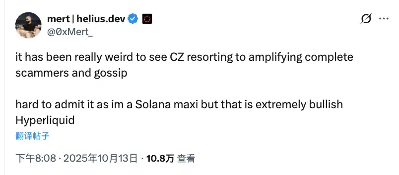 这场争论很快引发了站队。DeFi 老炮 Andre Cronje 站台 Binance,而 Solana 社区核心成员、Helius Labs CEO Mert 则选择支持 Hyperliquid。整个行业因此**成两个阵营。