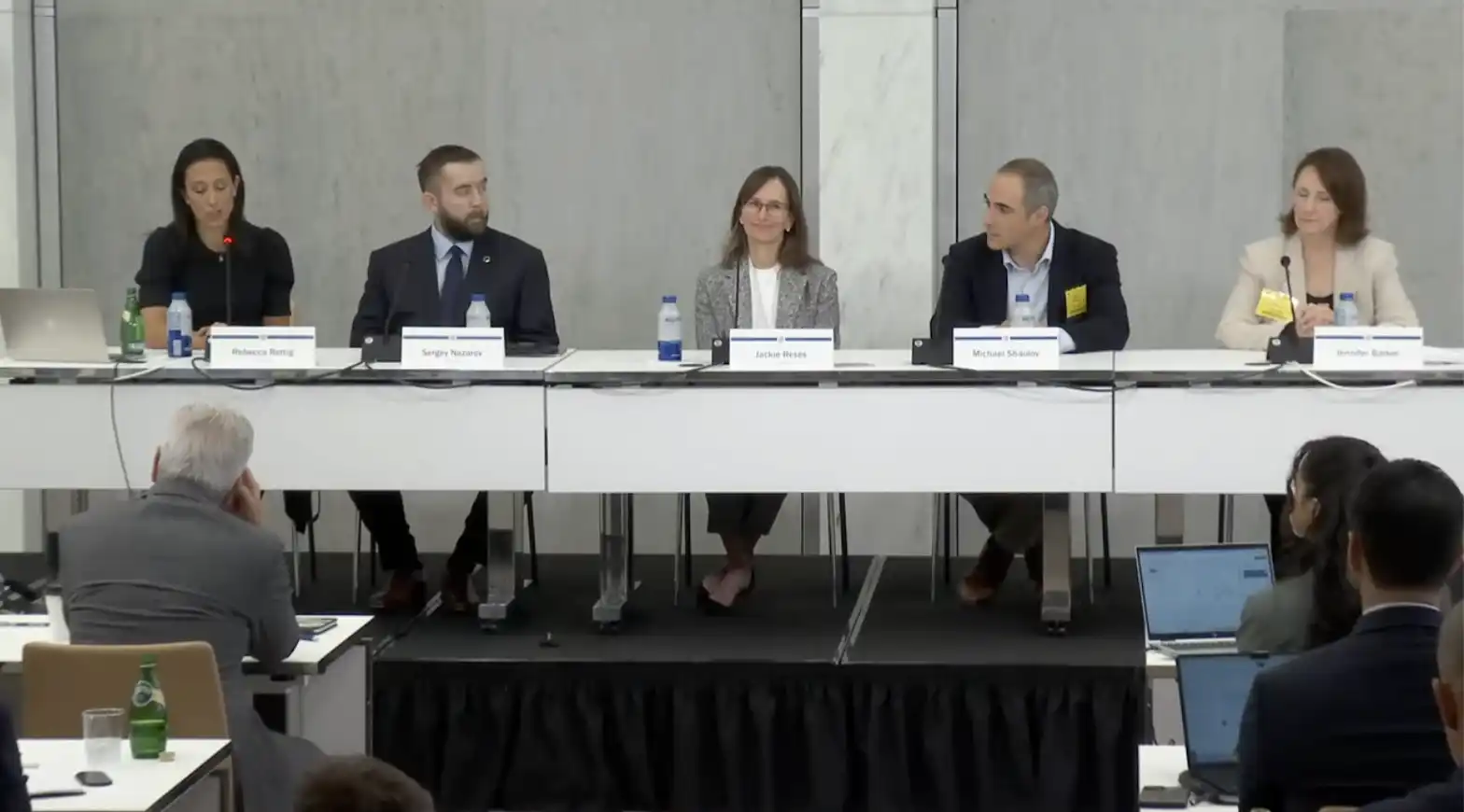 **个专题讨论的主题是「传统金融与数字资产生态的融合」。主持人是 Jito Labs 的**法务官丽贝卡·雷蒂格,台上坐着 Chainlink 的联合创始人谢尔盖·纳扎罗夫、Lead Bank 的 CEO 杰基·雷塞斯、Fireblocks 的 CEO 迈克尔·肖洛夫,还有纽约梅隆银行的资金服务与存托凭证全球主管詹妮弗·巴克。