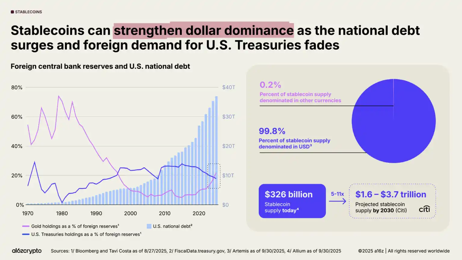 即便外国央行减持美债,稳定币仍在巩固美元的主导地位。