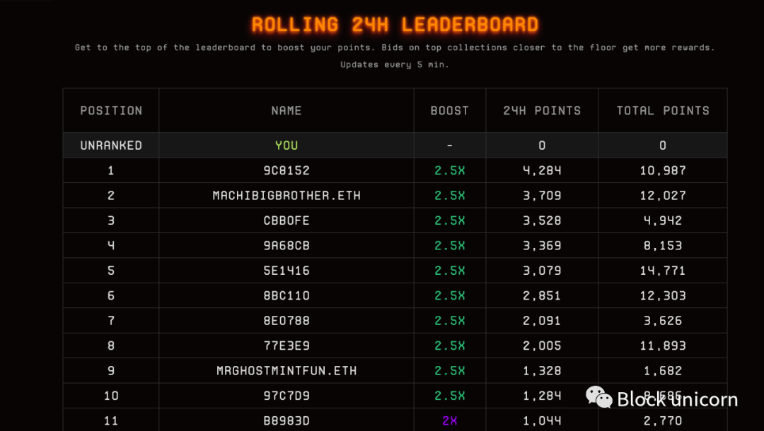 **,在整个过程中,Blur为用户保留了一个排行榜,按积分排名。这创造了游戏化的竞争和社交证明,显示了其他用户的活动。