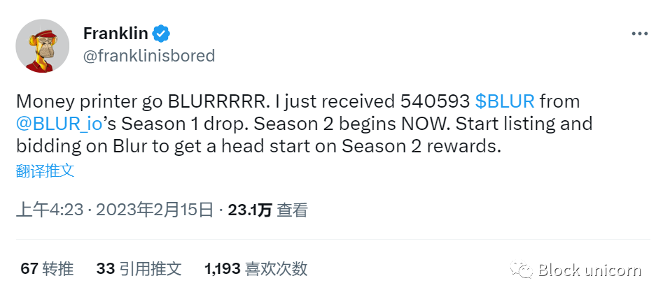 值得注意的是Blur的忠诚度计划将持续到第二季,作为一种激励措施,使交易者对平台保持忠诚。