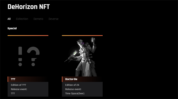 DeHorizon 是一个 metaverse 生态系统,目前正在开发 3 款游戏,Team Battle DeVerse、Battleroyale DeTournament、Dragon-racing、 DeQuidditch。每个游戏都将独立开发,但可在 DeHorizon 元节中互操作。DeVerse 是一款团队对战游戏。在 DeVerse 中,每个玩家都需要一个元神和一张点卡来战斗和赚取。每个元神代表 DeVerse 中的一个角色,拥有 1 个普通攻击和 3 个技能。DeMeta Pass ID (DeMeta) 是您的虚拟身份,使您有**进入 DeHorizon 元界中的不同游戏。