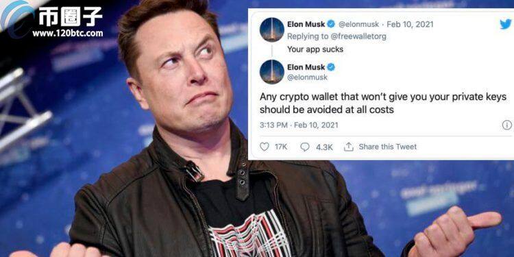 马斯克在Freewallet官方推特下留言:“你们的APP真是烂透了。所有不提供私钥的加密钱包都应该避免使用。”