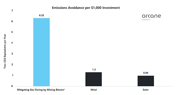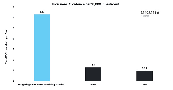 数据显示,通过挖掘比特币来减少天然气燃除可能是所有减少温室气体排放的工具箱中**大的工具。每安装一兆瓦的容量,比特币挖矿系统每年就可以减少 9,482 吨二氧化碳当量的排放,相比之下,风能每年减少 1,917 吨排放,太阳能每年减少 1,278 吨排放。