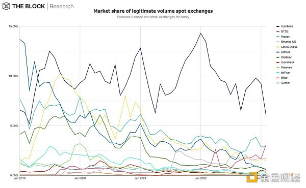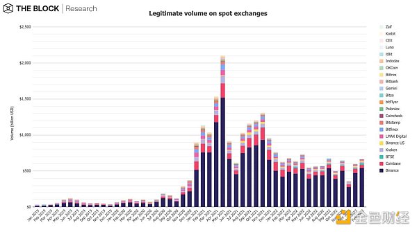 6、合规**化交易所(CEX)的现货量在一月份增加了11.4%,达到约6658亿美元。