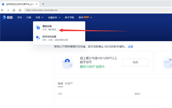 2.来到交易页面 在欧意okex上来到基础交易页面。