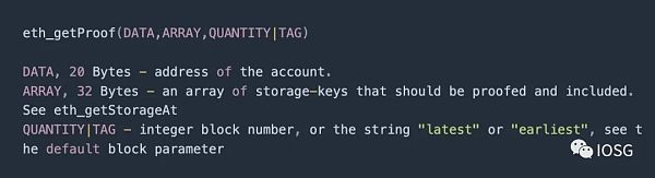 生成存储证明大多数 EVM 兼容链都提供了这个功能。一旦用户明确了存储槽位,他们就可以使用 RPC 调用此方法来生成存储证明。