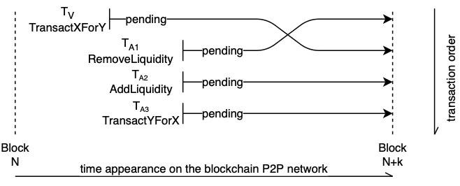 人们可以通过这种方式计算出**特定交易的近似价格效应,这比传统金融中的抢先交易更有优势。DEX 上的每笔交易都有特定的性质,人们可以计算优化的交易规模,抢先购买。