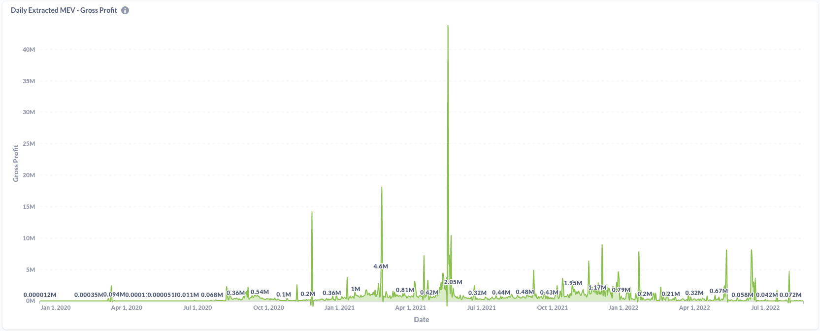 MEV 是矿工可以从操控交易中提取的 ETH 总额。这种操控分为几种形式,但大多数是重排交易顺序和 frontrun(抢先交易)。