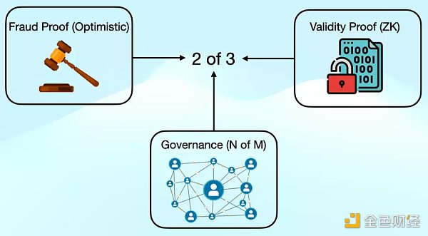 Vitalik 则完善了 Kelvin 的方案, 认为可以通过 (OP ZK) Governance 的 2 1 组合来实现可靠的 Rollup。