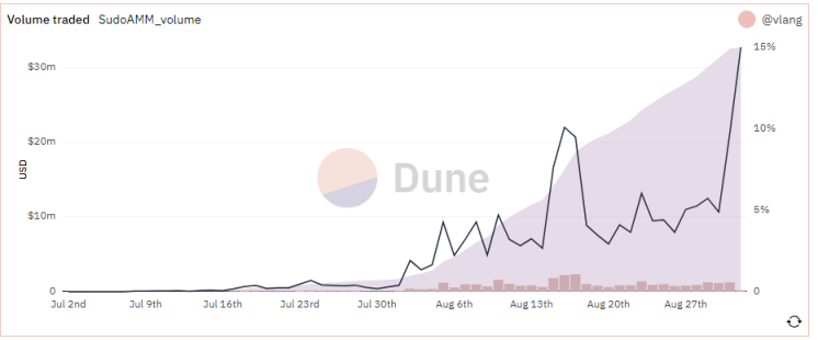 你有像 SudoAMM/XMON 这样的项目,在交易量中占据了有意义的市场份额(尽管是在一个低交易量市场)。