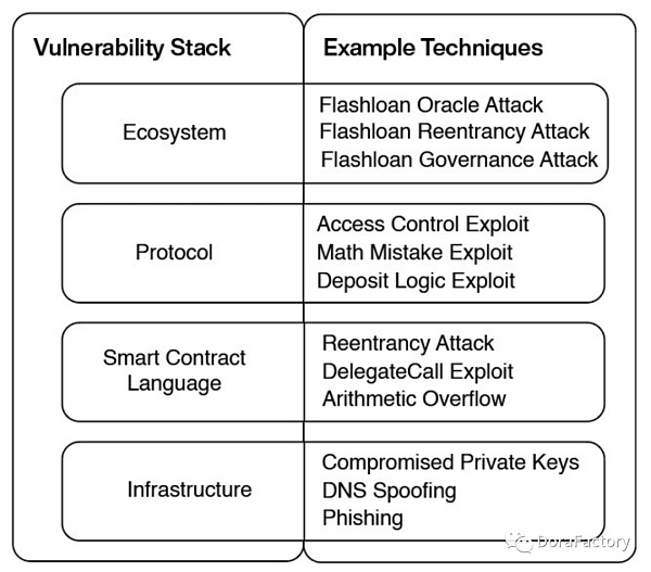 由于堆栈的每一层都有其独特的漏洞。我们可以根据被利用的堆栈层和使用的方法对加密黑客进行分类。