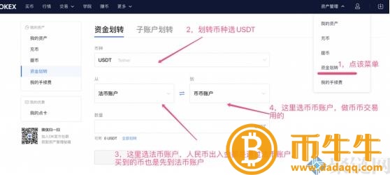 以人民币购买USDT默认情况达你的OKEx法币账户(有些交易所也叫法币账户)C2C账户),如果你想交易,你需要用货币账户的货币来交易。因此,您还需要使用您的法定货币账户USDT通过资金划转的形式转到货币账户中。如下方法: