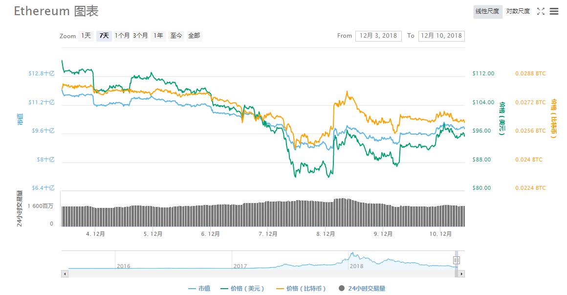 度过了上周五的暴跌,ETH的币值再周末和今天展示出回暖的趋势。截至发稿之时,ETH币值已经上涨到95.23美元,而大部分的数字货币也在逐渐回暖。