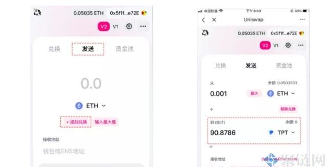 Uniswap主要分为三个功能,分别是兑换发送资金池。