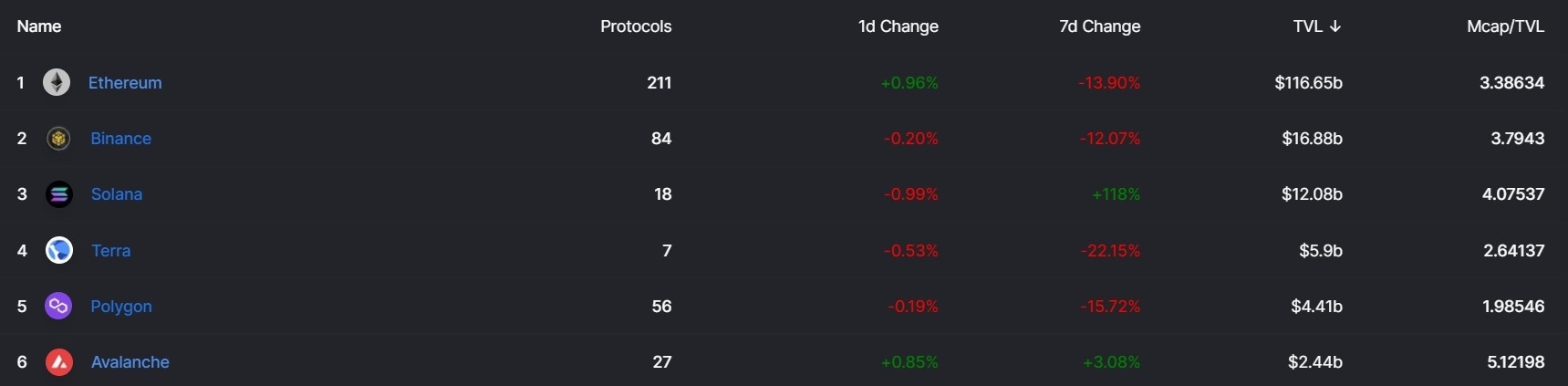 根据DeFiLlama的链上总锁仓价值(TVL)数据,以太坊目前的总锁仓价值(TVL)为1,160亿美元,虽仍遥遥**各家公链项目,但近7日出现13.9%的下滑,表明流动性正在向竞争链转移。