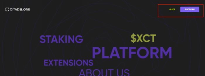 1、进入Citadel官网;,进入官网之后,点击右上角的“PLATFORM”就可以进入应用登录界面了;