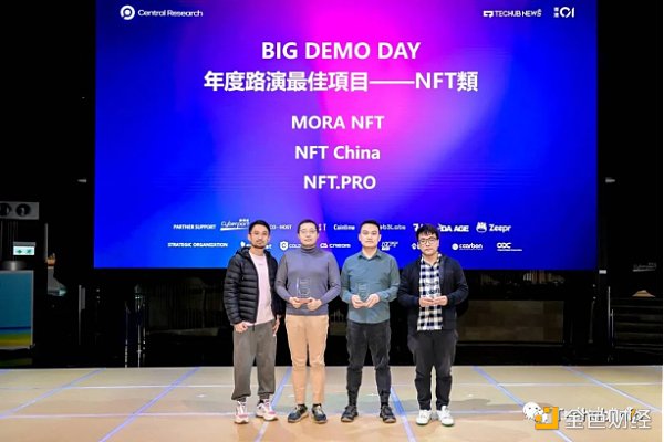 NFT类项目中,MORA NFT、NFT China、NFT.PRO凭借其独特的艺术价值和收藏价值获得了年度路演**项目NFT类奖项。