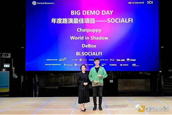 SOCIALFI项目中,Chatpuppy、World in Shadow、DeBox、Bi.SOCIALFI凭借其创新的社交模式和互动体验获得了年度路演**项目SOCIALFI奖项。