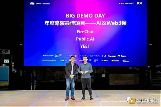 Al&Web3类项目中,FireChat、Public.Al、YEET凭借其先进的人工智能技术和区块链应用获得了年度路演**项目Al&Web3类奖项。