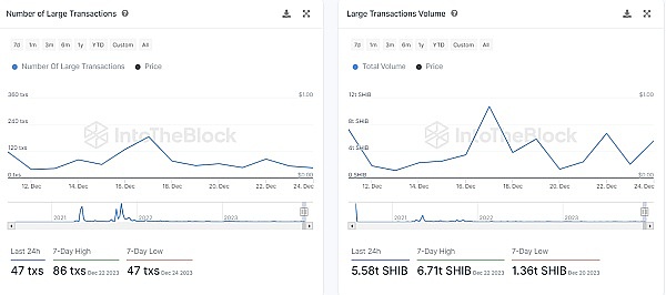 分析所提供的链上数据显示 SHIB 持有者之间存在一系列活动。通常与加密鲸鱼相关的大型交易已显着增加。最近 24 小时内已记录了 47 笔大宗交易,表明主要投资者重新燃起兴趣,并可能对 SHIB 持股进行重新分配。