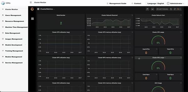 我们为了增强Utility AI容器云的使用体验,Utility AI容器云的使用界面设计了矿工管理端与芯片用户端,区分不同的用户与操作逻辑,使得Utility AI容器云平台中不同类型的用户可以出色地协调配合。