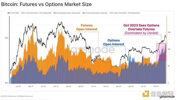 2020-23 年周期的一个显著特征是期货和期权市场成为价格敞口和流动性的场所。 事实证明,2023 年是这一成熟过程中的重要一年,因为期权市场的未平仓合约规模已发展到与期货市场相当甚至超过期货市场。