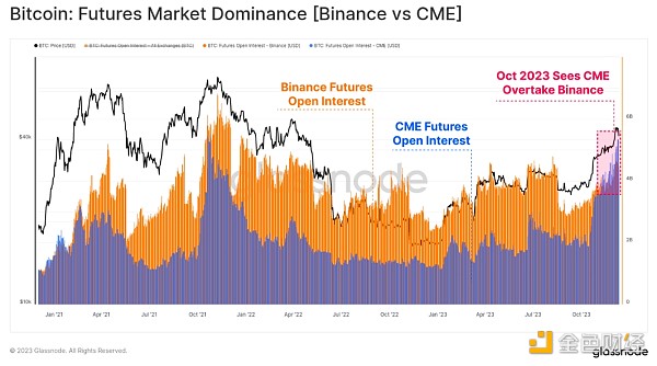 在期货市场内,也出现了值得注意的主导地位转变,受监管的芝加哥商品交易所 (CME) 交易所持有的未平仓合约历史上超过离岸交易所币安 (Binance)。 十月份似乎再次成为这一阶段转变的重要时刻,暗示着机构资本的涌入。
