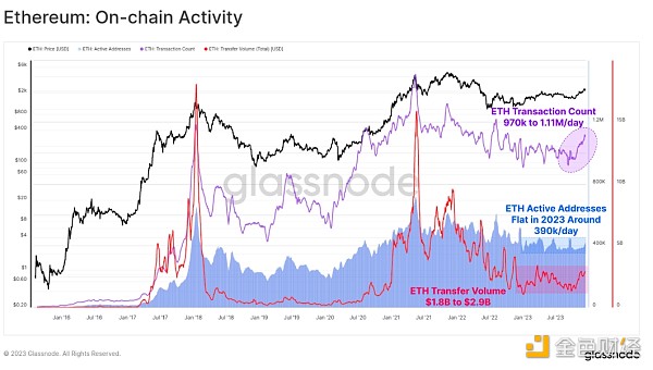 ETH交易量从18亿美元/天增加到29亿美元/天。